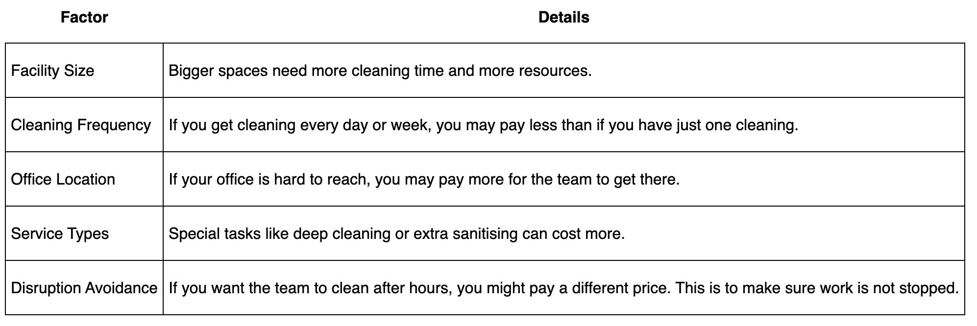 Many things can change the cost of office cleaning services in Toronto. These things help Golden Palm Maintenance give the right pricing for each client. The most important things are: